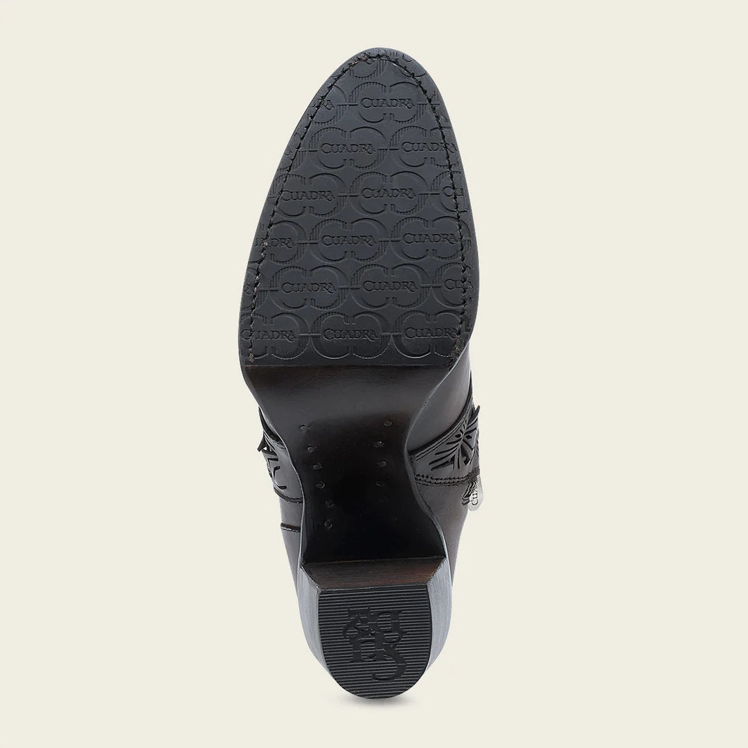 Experience the luxurious comfort and exceptional quality of Cuadra chocolate western cowgirl leather ankle boots for women. Featuring genuine cowhide leather and intricate embroidered details, these boots are handcrafted with Goodyear welt construction for unmatched durability. The soft leather lining and nonslip sole make these boots both stylish and practical. Made in Leon Mexico with the utmost care and attention to detail. Elevate your style and step into the world of Cuadra today!