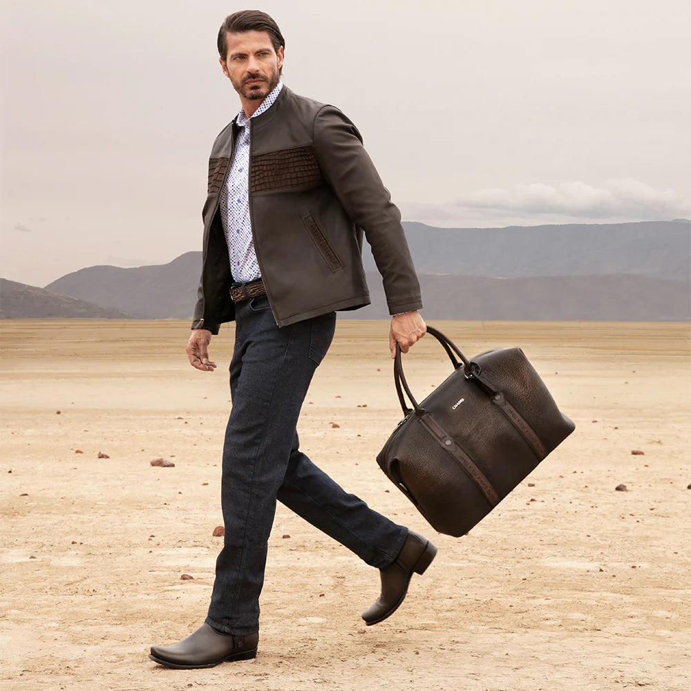 H391CPB - Cuadra chocolate dress casual aviator crocodile leather jacket for men