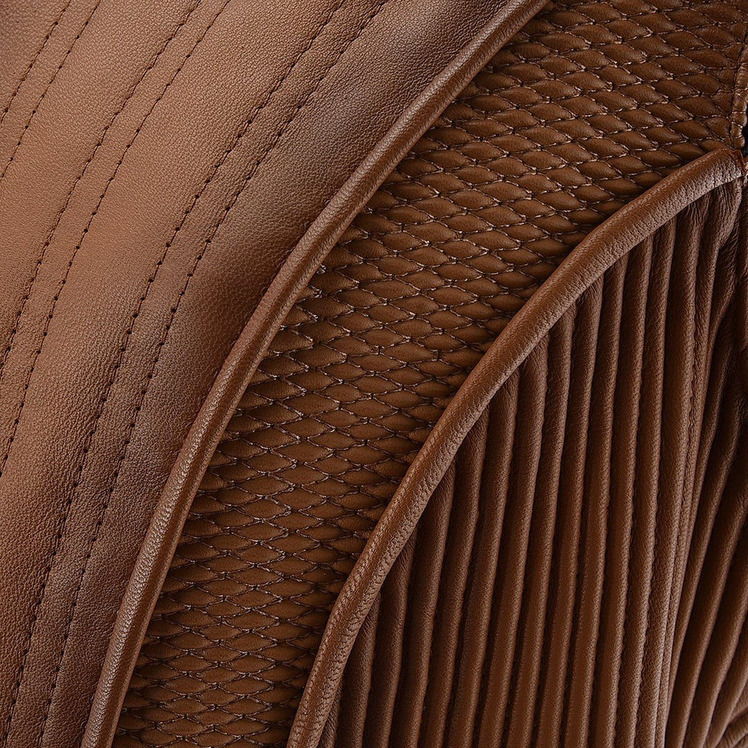 - Ribbed leather side panels adds a flattering shape