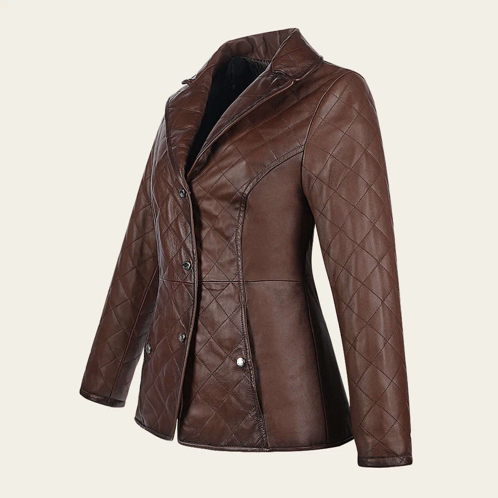 Step up your fashion game with the Cuadra brown western fashion quilted leather jacket for women. This genuine leather jacket boasts quilted and woven details on the front, along with a zip closure and two front zip pockets. With its unique hand painted design and sleeve zippers, this jacket is a must-have for any passionate fashionista. Elevate your style and make a statement with this Cuadra leather jacket.